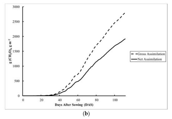 (a) Estimated daily gross and net assimilation for SIL05 sown early in 2012. (b) Estimated accumulation of gross and daily assimilation for SIL05 sown early in 2012.