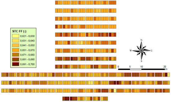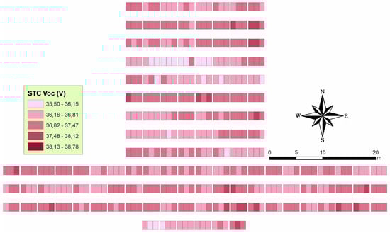 Furthermore, it is mandatory to identify the exact position within the panel of the possible faults. For this reason, the split installation with photovoltaic panels was taken into account and the thirds of cell within each panel. This means that the 60 solar cells of each panel are divided into three parts, thus each photovoltaic module is formed by 180 thirds of cells. The maps were georeferenced by assigning them projected coordinates ETRS89 UTM 30N.