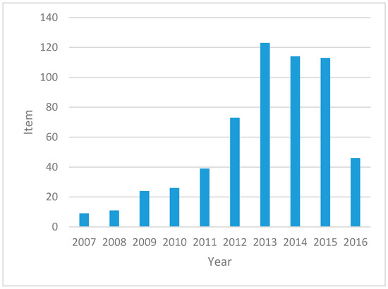 The number of papers published from 2007 to 2016.