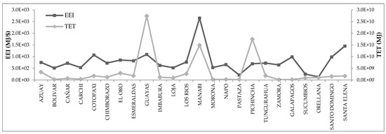 Economic Energy Intensity (EEI) and Total Energy Throughput (TET) of the 24 provinces of Ecuador. Source: Own elaboration.