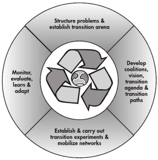 - Kemp, R.; Loorbach, D.; Rotmans, J. Transition management as a model for managing processes of co-evolution towards sustainable development. Int. J. Sustain. Dev. World Ecol. 2007, 14, 78–91. [Google Scholar] [CrossRef]