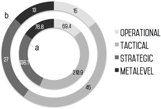 The number of citations can be used as an indicator for both quality and relevancy, as well as may indicate the focus of the on-going research questions and related efforts. Research contributions were analyzed from the point of view of total citations (using Google Scholar as primary source) and average citations per year (dividing the total number of citations by the number of months the article has been published). In terms of total citations (Figure 5), contributions at Tactical level are the ones with the highest average value, as well as the ones with the highest number of citations per year. Contributions at Strategic level feature lower figures, both in terms of total citations and citations per year. Contributions at Metalevel and Operational level feature similar numbers, approximately 1/3 of those that feature at Tactical level.