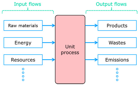 Figure 2 illustrates IDEA’s structure, which uses a unit process to relate input flows (raw materials, energies, and resources) to output flows (products, wastes, emissions to air, water and soil) [