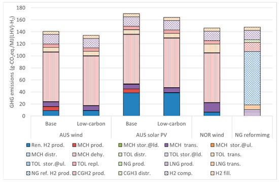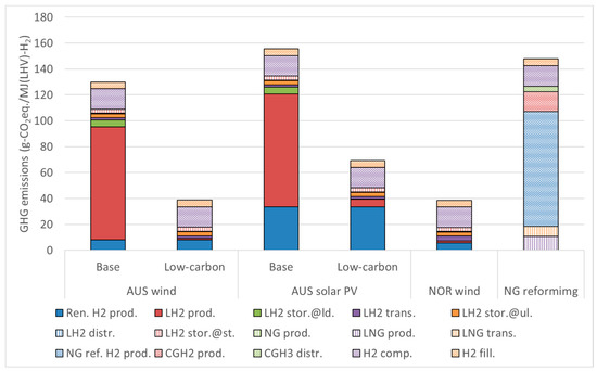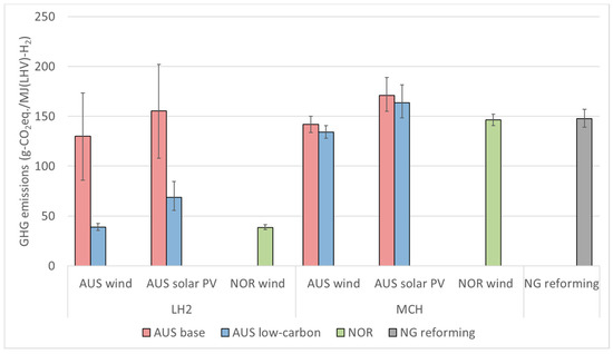 Figure 9. With a 95% confidence interval, renewable hydrogen produced in Australia (low-carbon cases) or Norway and transported to Japan as LH