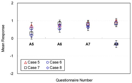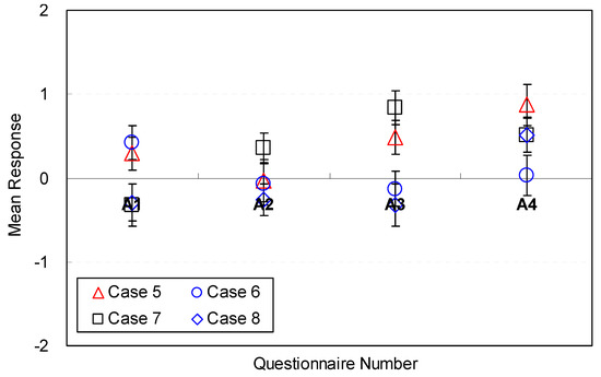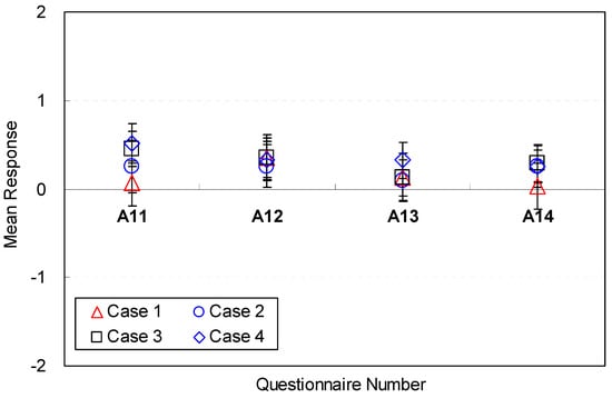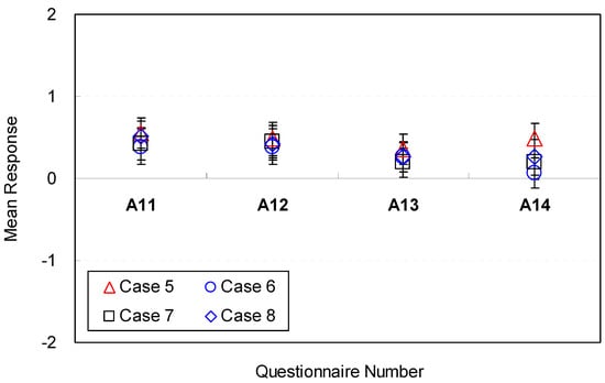 As in Step 5, overall satisfaction for the space was evaluated within 5 min. After participants completed the navigation and answered the questions for each space’s condition, they were asked to answer question 15 in Table 4.