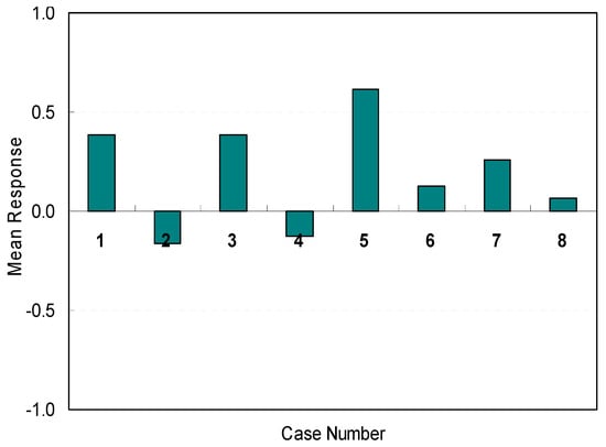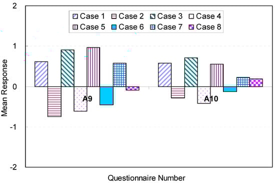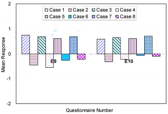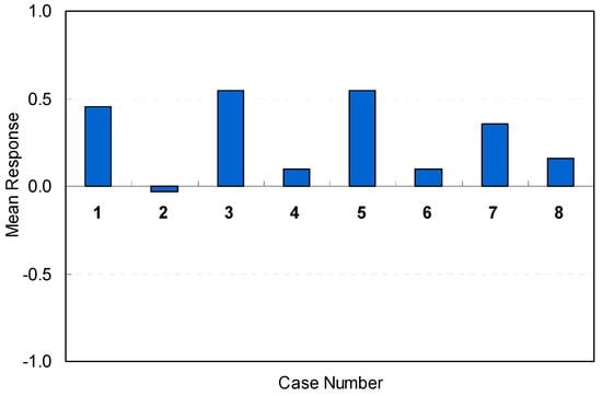 Among all conditions of the eight spaces investigated in this study, case 3 (M = 0.55, SD = 0.96) and case 5 (M = 0.55, SD = 0.77) illustrated the best conditions in terms of efficiency. This result was like that for overall spatial satisfaction in terms of amenity discussed in a previous section. It seems that lower brightness levels for walls, higher brightness levels for floors, and recessed lighting fixtures on ceilings contributed to favorable perceptions of a space’s efficiency. No negative perceptions of efficiency were reported for the eight alternative spaces. The results indicate that recessed lighting fixtures on the ceiling contributed effectively to improved and favorable perceptions of efficiency. The findings about overall satisfaction in terms of the perception of efficiency are presented in Table 9.