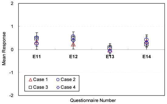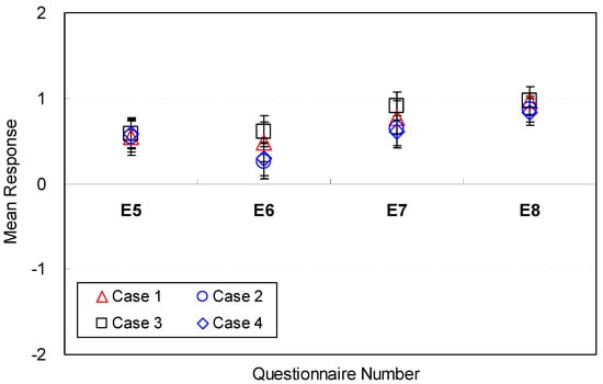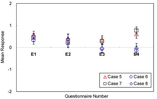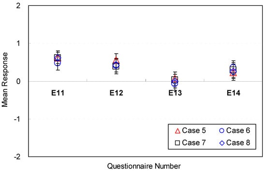 The sofa style, however, was not perceived as an affordable factor for efficiency (E13). The mean response for all eight cases was close to neutral on the voting scale (M = −0.06, SD = 1.06 ~ M = 0.06, SD = 1.21). The results demonstrate that the sofa style was not perceived to be a significant factor affecting efficiency. Accordingly, sofa styles do not need to be determined in the early phase of spatial design.