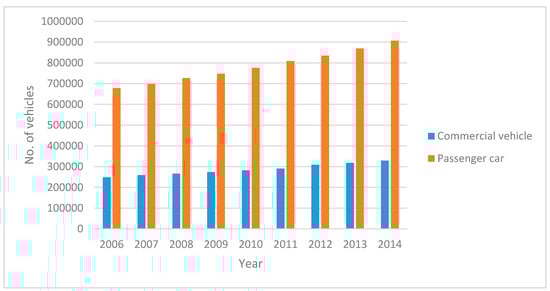 Despite the advancements in vehicular transportation, maintenance of transportation sustainability is perpetually an essential and challenging task. Sustainability of transportation involves not only managing go-green transportation, but also establishing effective transportation planning systems for ensuring road traffic safety. Statistical analysis [7] has shown that the usage of vehicles, especially cars, has been on the rise since 2006. Figure 1 shows a graphical representation of the global usage of passenger cars and commercial vehicles in the period of 2006–2014. The graph clearly reveals a consistent growth in vehicle usage.