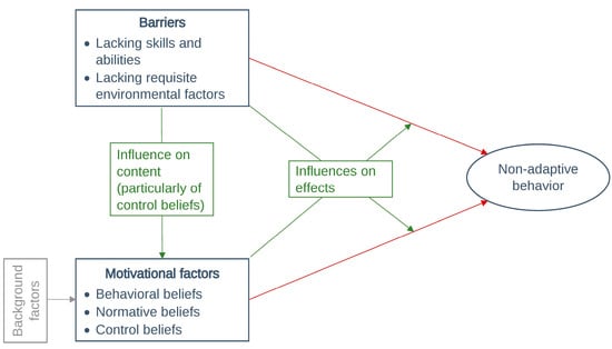 Based on the outlined considerations, Figure 1 depicts barriers, motivational factors and their interactions within a model of non-adaptive behavior.