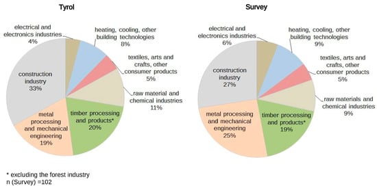 Sectoral distribution of manufacturing firms in Tyrol compared to the survey (% of firms). Calculations conducted by the authors, based on Tyrolean Chamber of Commerce [].