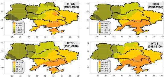 The hydrothermal coefficient by G. Selyaninov (HTCS) [51] is used in Ukraine as the main meteorological indicator of aridity in agriculture and forestry. HTCS is calculated as