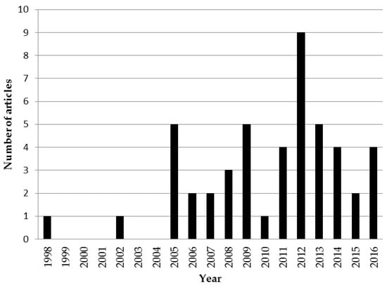 Figure 2 presents the number of the publications per year. Except for two articles published in 1998 and in 2002, publications bloomed after 2005 and peaked in 2012, for which nine studies were registered. This finding clearly ratified our assumption that the integration of the lean philosophy and sustainability is still poorly researched within the construction industry.