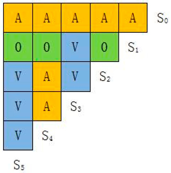 For reachable matrix M, first, is obtained according to Equations (4) and (5). According to the method of determining the factors at other layers, , and are obtained. According to , , and , the sorted reachable matrix B is obtained, as shown in Equation (8).