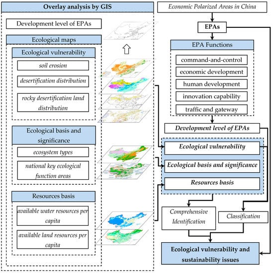 The framework of analysis (Figure 2) presented two analysis clues: one is to evaluate the ecological vulnerability and identifying sustainable restriction combined “ecological basis and significance” and “resources basis” named as “comprehensive identification”, and the other is to divid 16 EPAs into four categories based on gauging the score of 16 EPAs’ development level and degree of ecological vulnerability named as “classification”. Then, based on the two clues we identified ecological vulnerability and located sustainability issues in the 16 EPAs.