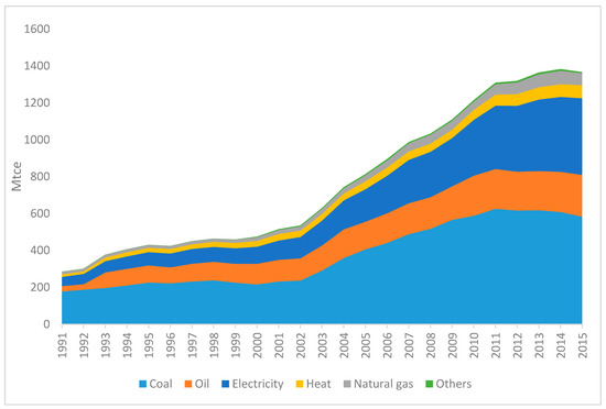 - Du, K.; Lin, B. Understanding the rapid growth of China’s energy consumption: A comprehensive decomposition framework. Energy 2015, 90, 570–577. [Google Scholar] [CrossRef]