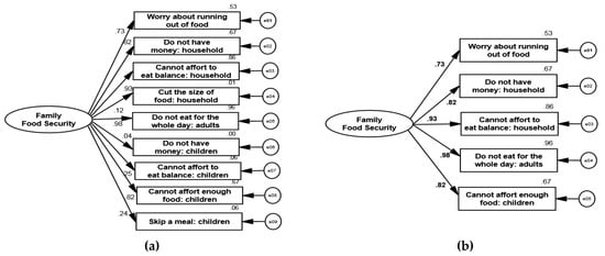 (a) Primary Measurement Model; (b) Modified Measurement Model. Primary and modified measurement models of family food security.