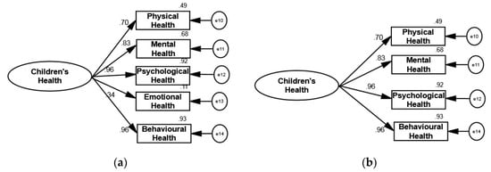 (a) Primary Measurement Model; (b) Modified Measurement Model. Primary and modified measurement models of children’s health.