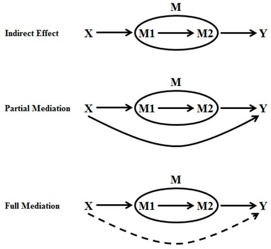 - Indirect effect: When the effects of X on M and M on Y are both significant, but there is no relation between X and Y.