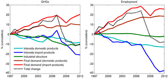 Structural decomposition of GHGs and employment (consumption).