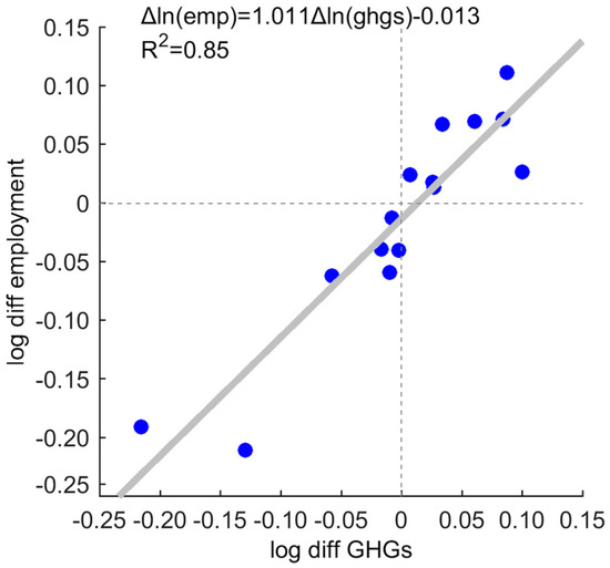 4.2. The Relationship between the Emissions and Employment Footprints
