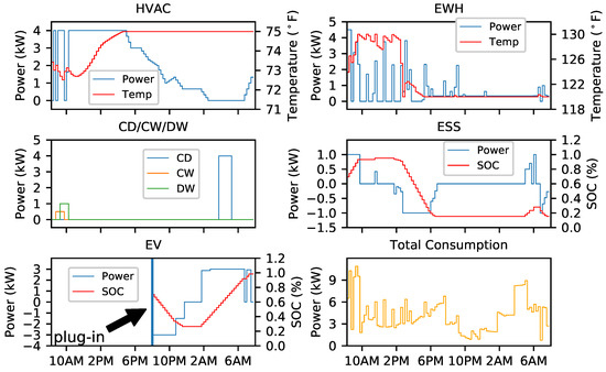 Currently, a large body of DR research on HEMS exists, and optimal operation of home appliances considering users’ electricity cost or comfort in response to a dynamic electricity price is a major concern. For example, in [5], a learning-based optimal DR policy for a heating ventilation and air conditioning system (HVAC) is developed to minimize the electricity cost. In [6], an end-users’ comfort-oriented DR strategy for residential HVAC aggregation scheduling is investigated. In [7], the DR capability of electrical water heaters (EWH) is evaluated for load-shifting and balancing reserve. In [8], coordination control of multiple batteries for optimal HEMS is studied. However, these DR strategies focus on scheduling of only a single type of appliance.