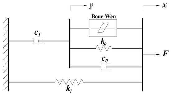 The modified Bouc–Wen model of the MR damper is shown in Figure 2. The nonlinear force of a MR damper can be calculated using the following governing equations (Equations (17)–(23)):