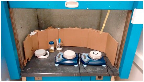 Fume hood: All experiments were performed in a fume hood to avoid human exposure to hazardous fuel vapors. We noticed small variations in the mass readings of the balances in the fume hood due to air currents therein. We reduced these currents by placing a cardboard shield around the balances (see Figure 2).