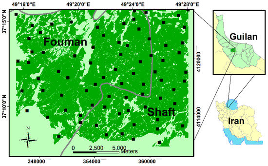 Figure 1. Location of the study area in the paddy fields of the Foumanat plain in the Northern Iran.