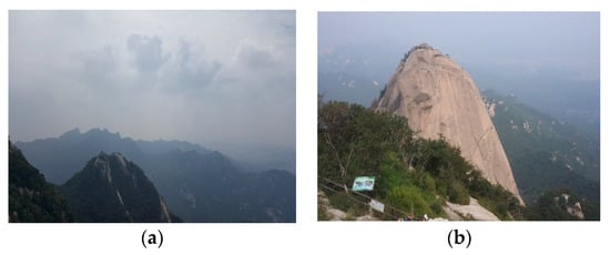 (a) A representative photo of cluster “Terrain”; and (b) a representative photo of cluster “Peaks”.