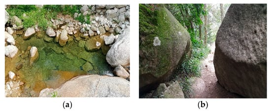 (a) A representative photo of cluster “Water”; and (b) a representative photo of cluster “Rock/Tree”.