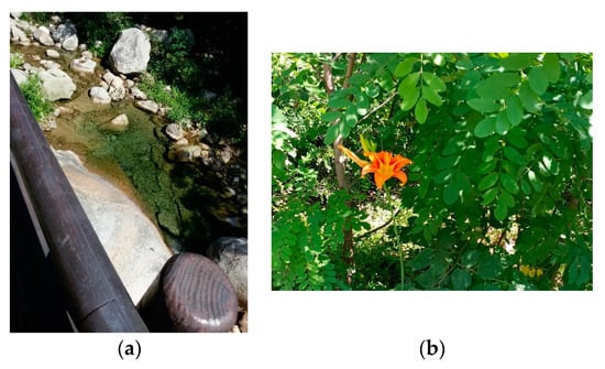 - Yamashita, S. Perception and evaluation of water in landscape: Use of Photo-Projective Method to compare child and adult residents’ perceptions of a Japanese river environment. Landsc. Urban Plan. 2002, 62, 3–17. [Google Scholar] [CrossRef]