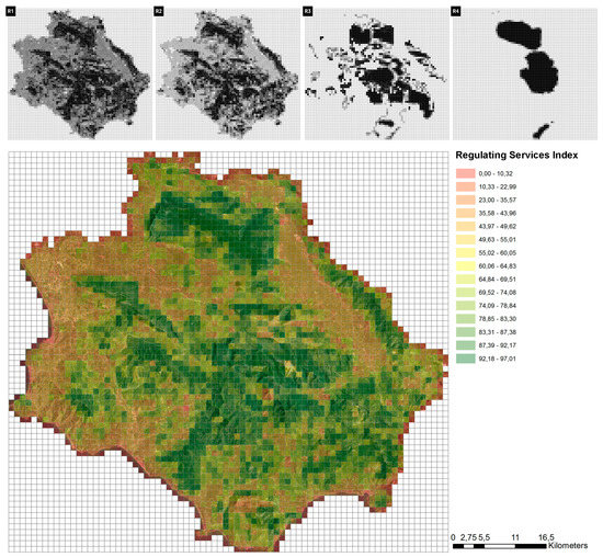 In contrast, the Regulating Services Index highlights the spatial distribution of the RS that aggregate the LULC rating of the expert-led methodology [