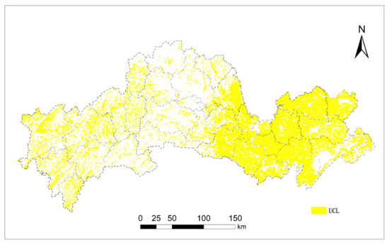 Using the method of spatial super position built into GIS software, based on the map of the LUCS database in 2014, we cut out the following two parts to determine the scope of the UCL.