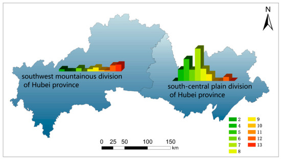 The study area includes the south-central plain division (SCPDHP) and the southwest mountainous division of Hubei Province (SWMDHP) in China (Figure 2). These are as were chosen because they display contrasting biophysical, topographic and socioeconomic conditions [36] (Figure 3), which are representative of the cultivated land system in Hubei Province and most parts of China. The SCPDHP is an area of intensive agriculture with inherently humic top soils, high rainfall and substantial socioeconomic opportunities and population density [36]. In contrast, the SWMDHP displays lower agricultural potential, poor soils, lower socioeconomic opportunities and a sparser population distribution.