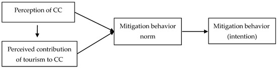 Mitigation behavior norm will mediate the relationship between perceived contribution of tourism to climate change, and mitigation behavior intention.