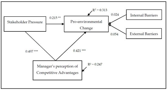 17], have considered managers as recipients that interpret and analyse stakeholder pressures based on their expectations of obtaining competitive advantages. It is precisely this area of knowledge that our research intends to examine. Consequently, this study aims to focus on the direct influence on pro-environmental change of stakeholder pressure and the expectations of obtaining advantages. In addition, it also aims to analyse how managers’ interpretation of pro-environmental change as an opportunity to obtain competitive advantages has an effect that conditions the response to stakeholder pressure.