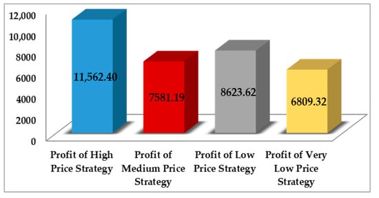 Although low prices and deep (very low) prices of the products are close, the methodologies are different. In addition, deep pricing strategy is just for big customers and applied occasionally when top management decides to use it. Consequently, the most profitable strategy for the supermarkets is low pricing scenario in Figure 4, although small price variation between low and deep pricing is determined in the tables above.