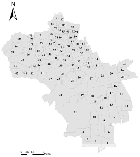 A differentiated production-life-ecology index system function evaluation was constructed to determine the functional position of each functional area. The method we used to calculate weights of indicators was used in the study of Xu et al., 2011 [42]. The weights of relative importance of each factor and subfactor are identified using a paired comparison. Their weights are decided according to their relative importance ranking with AHP. In our research, we designed a weight survey table for 50 experts who were familiar with functional area of Haidian Distrcit and asked them to assign a weight for each index according to their pact. Then we obtained the weight of each factor and subfactor by weighing the average of all the experts’ survey tables. The result of the indicators and weights are shown in Table 4 [36,42,43].