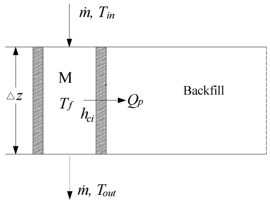 According to Assumption (3) that there is no contact thermal resistance between backfill material and pipe, the thermal resistance between the fluid inside pipe and backfills can be divided into two parts: convective heat transfer resistance inside the pipe and heat conduction resistance of the pipe wall. Thus, the total heat transfer resistance for an element pipe with a length of ΔZ can be expressed as [32]