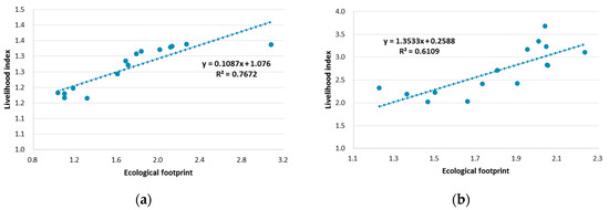 2.2.3. Investigating the Relationship between the Livelihood Index and Ecological Footprint