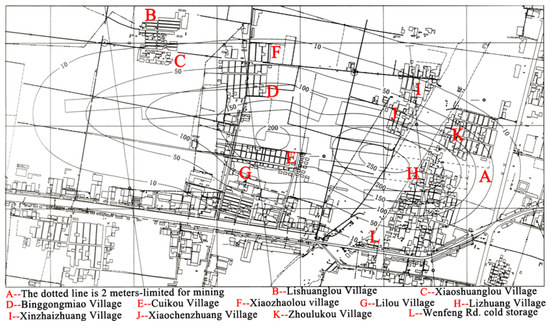 Xingtai coal mine locates in Hebei province and belongs to Jizhong Energy Group. The coal mine area covers 3192 hm2. The coal mine has one coal processing plant and one coal combustion power plant, which supply enough raw stowing materials. Here we chose the 7606 mining working face which is located under the industrial square and in the middle of the mining area as an example to explain the results. The 7606 working face had a length of 100 m, the thickness of the coal seam was about 5.5 m and the actual mining height was 3 m, the average mining depth was 310 m and the average seam dip angle was about 9°. The mining advancing length of 7606 working face was about 1340 m and the advancing velocity was about 4–6 m/d. Along its advancing direction, there was about 820 m under the industrial square and infrastructures. After excavation of the coal seam with solid dense stowing, the final subsidence situation is shown in Figure 10 and Table 3 as follows.