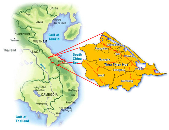 Binh Dien hydroelectric plant situated on the Huu Trach River, one of the three main tributaries of the Huong River in Thua Thien Hue province, central Vietnam. The Huu Trach River originates from A Luoi mountainous district, flows through Houng Tra District and then combines with the Ta Trach River at the confluence of Tuan to flow into the Huong River, and onto the coastal plain [2] (Figure 1). This river has a length of 70 km with a drainage basin of 691 km [10,11]. The Huong River plays an important role not only in terms of water resources but also for cultural, societal and landscape values in Hue city. The basin area of the Huong River is 2830 km2, accounting 56% of total area of Thua Thien Hue province. The largest proportion of land use in the district is comprised of forest land, making it appropriate for activities like forestry, industrial tree planting and animal husbandry. According to Smith et al., [12] in the neighboring Huong Thuy District is comprised of 14% agricultural land, 3% residential, 47% forestry (natural and planted forest), 7% special use (construction, transport and other facilities) and 29% unused land (located in mountainous area). At the Provincial level the relative proportion of land uses are: 12% agricultural production; 65% forestry; 6.4% special use; and 3.6% residential [13].