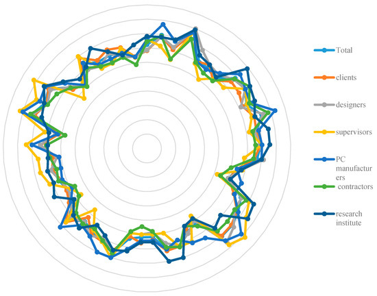 The results revealed that respondents had a cognitive bias on the factors (Figure 5.), which was mainly distributed in design, production and transportation stages. Based on the respective cognition, interests and function, participants provided different judgments (Table 7).