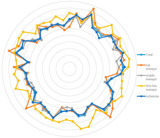Different in function, top managers (Group 1), middle managers (Group 2), first-line managers (Group 3) and technicians (Group 4) held different opinions on cost management (Table 6). Top managers owned actual project management experience and holistic ideas. “Specification and standards for prefabricated building design”, “Capacity of production line in PC”, “Related experience of manager”, “Order quantity of PC”, “Efficiency of production worker,” “Collaborative capacity among professional designers”, “Coordination between designer and PC manufacture”, “Node coordination between PC and on-site component”, “Transport distance”, and “Coordination of all types of work on site” were the main factors affecting the cost of prefabrication. Those factors were divided into technology and management parts related to the whole industry chain. The top managers suggested that the feasibility of technology and the professional qualities of the participants had impact on cost management [21]. Moreover, the cooperation, consciousness and subjective initiative can affect cost management as well. Middle managers cared more about the practical factors in the view of the stakeholders. “Specification and standards for prefabricated building design”, “Rationality of PC split”, “Related experience of manager”, “Order quantity of PC”, “Collaborative capacity among professional designers”, “Reuse ratio of standard components”, “Capacity of production line in PC”, “Coordination between designer and PC manufacturer”, “Reuse rate of PC mold”, and “Operant level on installation personnel” were the important factors for them. The middle managers suggested that rationality of management, experience of managers, and coordination between stakeholders influenced the cost management of prefabrication. First-line managers were personally involved in the prefabrication project, and paid more attention to the practical problems, which included “Node coordination between PC and on-site component”, “Production technology of PC”, “Diversity of prefabricated building structure”, “Technical standards system of prefabricated building”, “Specification and Standards for prefabricated building design”, “Collaborative capacity among professional designers”, “Operant level on installation personnel”, “Coordination of connection nodes of PC components”, “Specification and standards for PC production”, and “Technical specifications and standards for PC installation”. The survey reported that first-line managers highlighted technical innovation, standards and specifications to guide production, design and installation, and rationality of project management. Technicians as technical staff, like technologist, surveyor, designer etc., emphasized the factors related to technology, including “Specification and standards for prefabricated building design”, “Rationality of PC split”, “Coordination of connection nodes of PC components”, “Related experience of manager”, “Operant level on installation personnel”, “Coordination between designer and PC manufacturer”, “Related experience of designer”, “Order quantity of PC”, “Capacity of production line in PC”, and “Node coordination between PC and on-site component”. Those factors can help facilitate design, installment and production, and are technical problems involved in node connection and installation.