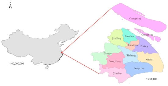 Shanghai is China’s economic, transportation, technological, industrial, finance, trade, exhibition and shipping center. The throughput of cargo and containers in Shanghai ranks first in the world. As the world’s leading financial center, Shanghai’s GDP ranked first among China’s cities and second among Asian cities in 2015, second only to that of Tokyo, Japan. Shanghai is an immigrant city. Its unique conditions have attracted a large number of people over the long history of its development process as this sea town has become a world metropolis. By the end of 2016, the population of Shanghai was 24.197 million. Figure 2 shows the location of Shanghai in China.