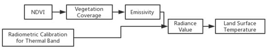 In addition, LST retrieval requires radiometric calibration for thermal band. For TM images, thermal band is band 6. For OLI images, thermal band is band 10 and 11. The specific implementation can be seen in Section 4.4.