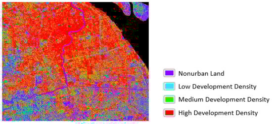 Table 12 shows the average LSTs and SUHI intensities of the downtown area and the remaining districts in Shanghai. Obviously, at the imaging time, the average LSTs and SUHI intensities both declined from downtown to outskirts. It is known that LSTs vary in different seasons or even at different times on the same day, and winter nights exhibit the most intensive SUHI in Shanghai due to the specific location and structure [52]. Therefore, the result of winter is chosen to distinctly analyze the relationship of LST and LUCC.