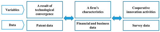 Therefore, this study measures the convergence levels of Korean information and communication technology (ICT) using patent data, and analyzes cooperative innovation strategies’ impact on Korean ICT convergence. The differentiation and novelty in this research is as follows: First, the result of technological convergence in Korean ICT firms is measured through bibliographic patent data, and this paper introduces this as a dependent variable to evaluate the performance of firms’ innovation strategies. Further, previous studies have evaluated cooperative behavior from the perspectives of financial performance, business performance, or improving production efficiency [18,19,20,21,22,23,24]. However, it has recently become more important to measure and evaluate technological convergence output, as firms have continued to strengthen their technologies, knowledge, and competencies to sustainably develop through technological convergence. This enables a firm to expand its opportunities to interact with other firms, supplement its deficient assets, and explore new markets and technological alternatives [25,26,27].