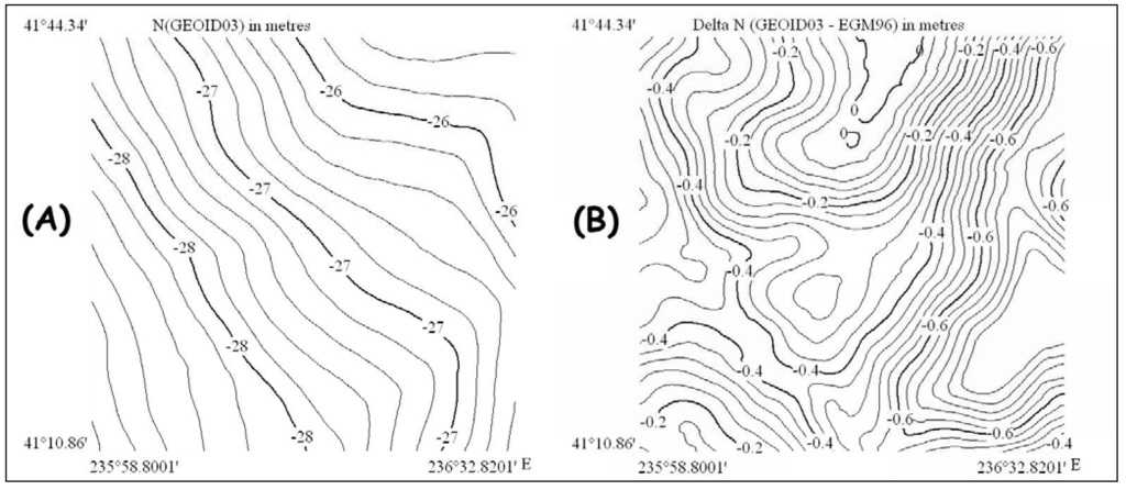 - Roman, D.R.; Wang, Y.M.; Henning, W.; Hamilton, J. Assessment of the New National Geoid Height Model, GEOID03. http://www.ngs.noaa.gov/pubs_lib/GEOID/ACSM04_GEOID03c.docIn Proceedings of the American Congress on Surveying and Mapping; Nashville Tennessee. 16-21 April, 2004.
