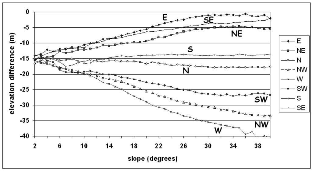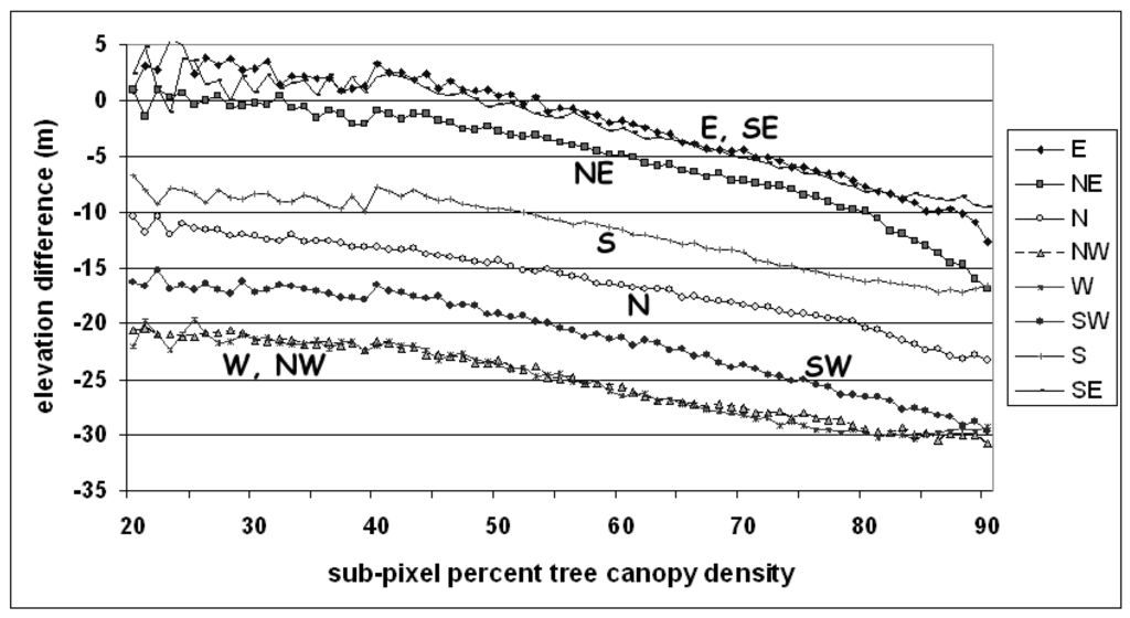 3.2. Elevation differences versus slope magnitude and percent tree canopy density